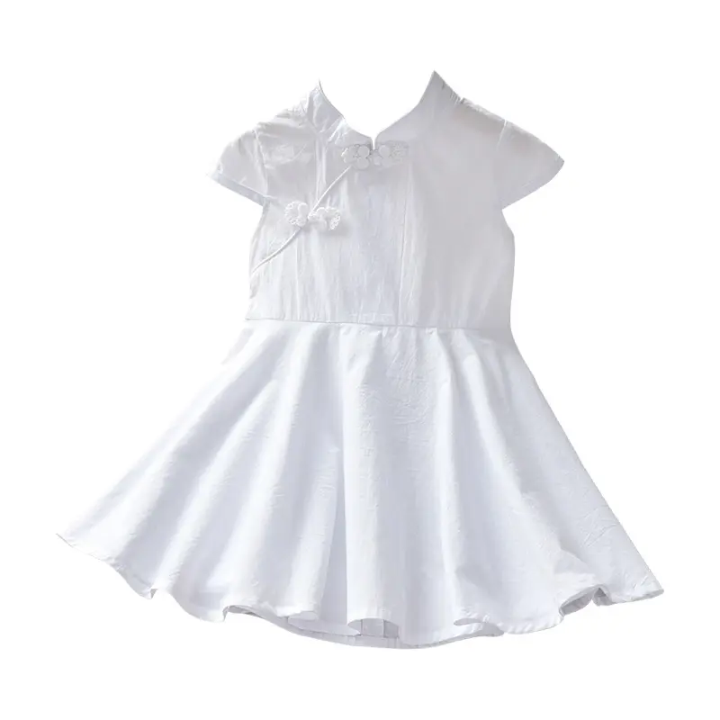 Chinese style buckle short sleeved ancient white dress children’s dress big swing skirt
