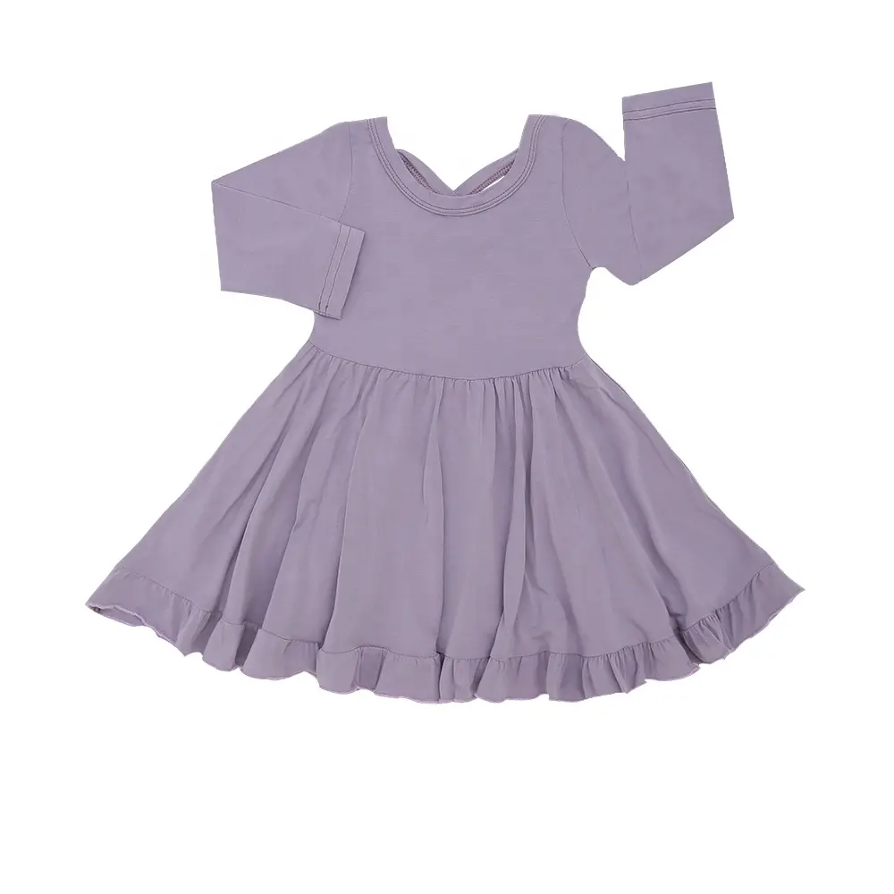 Kids Clothes with Ruffle Bow O-Neck Plain Color Girls Sleeveless Dress